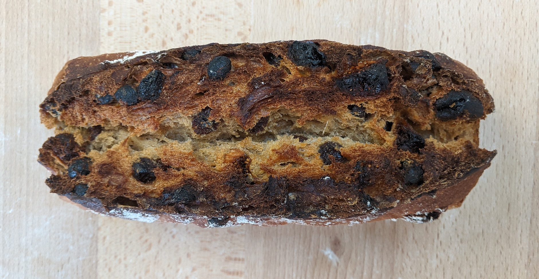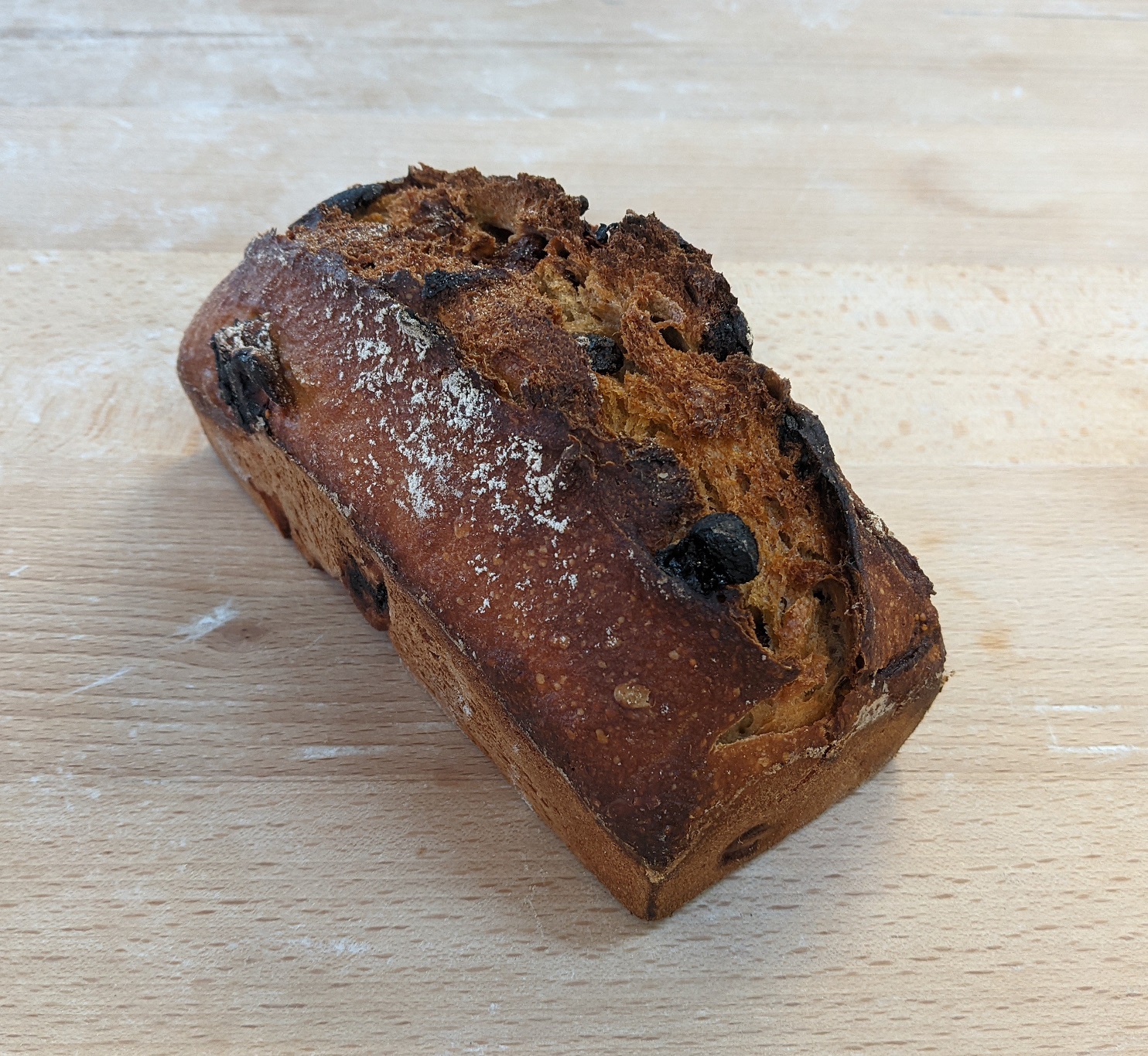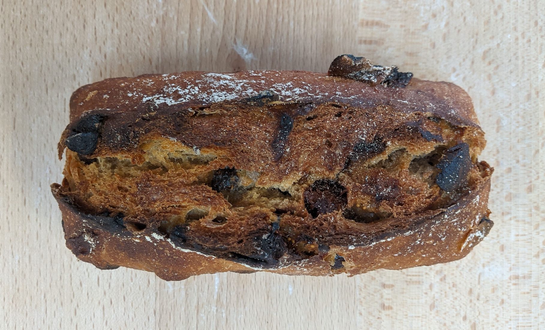 Pain aux blés anciens aux fruits secs (noisettes, figues, abricots et raisins), au format moulé 500g ou 1kg.